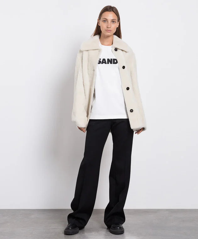 Футболка з довгими рукавами з компактного бавовняного трикотажу з написом Jil Sander спереду. Модель доповнена ребристою горловиною і спущеними плечима.