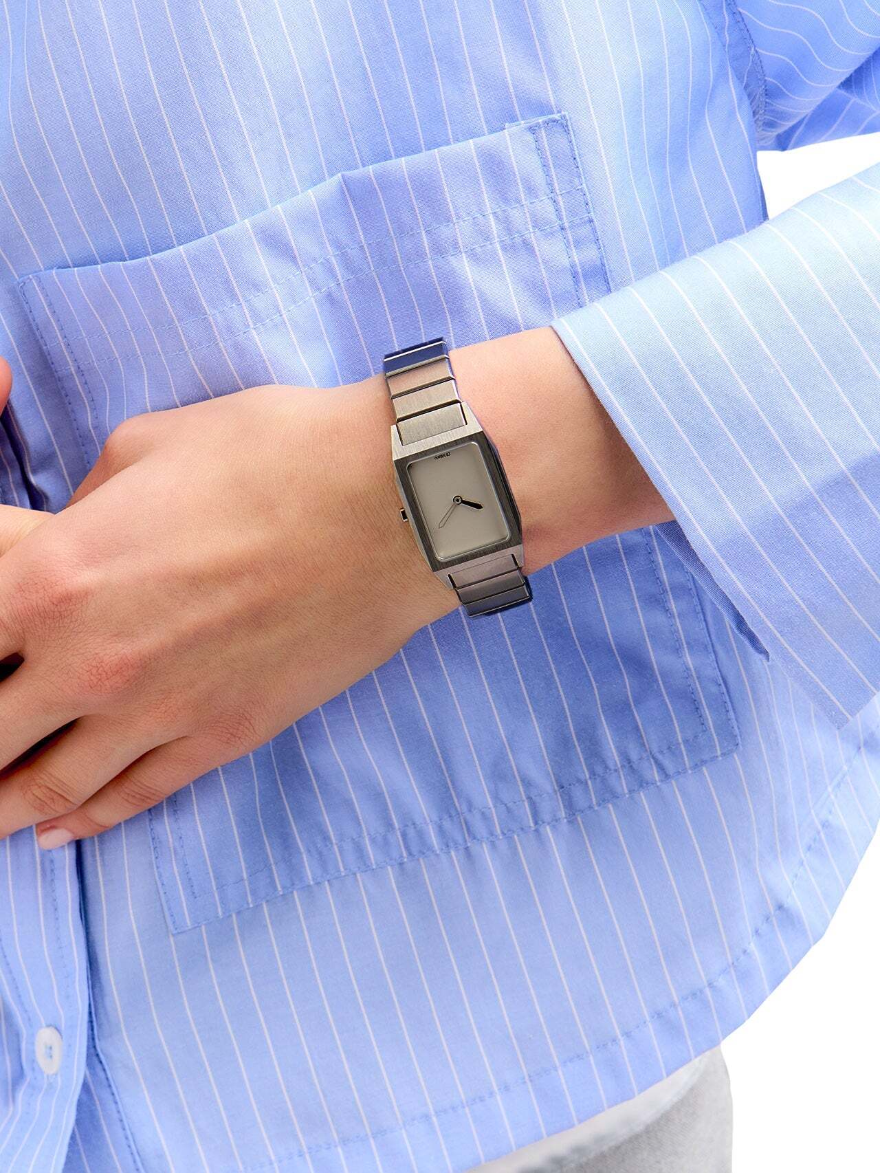 Новий вишуканий і несподіваний аксесуар, що поєднує в собі позачасову елегантність вінтажного прямокутного дизайну з сучасним металевим відтінком.